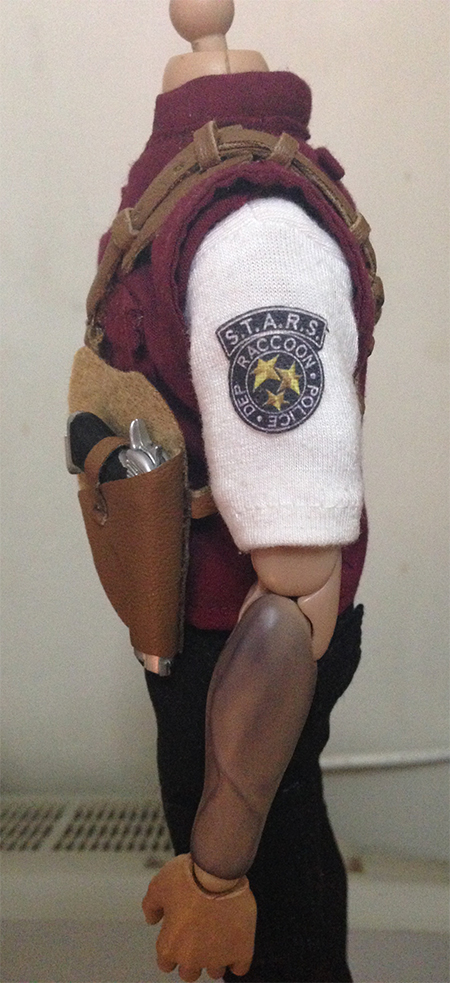 Here is the hand-made 1/6 Resident Evil Barry Burton outfit set. Model is a dragon. Outfit includes red tactical vest, white shirt with shoulder patch, black tactical pants, brown removable holster (handgun is NOT included).