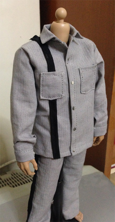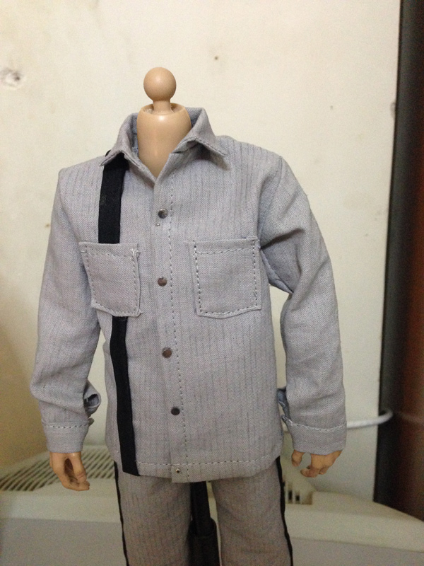 Handmade 1/6 Prison Uniform from movie Escape Plan. Buttondown striped shirt and striped pants.