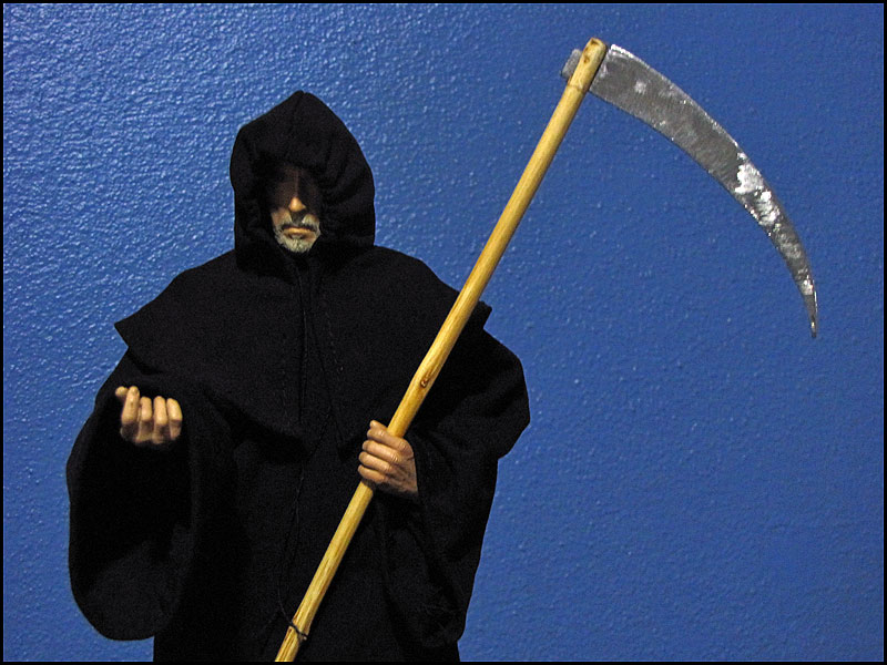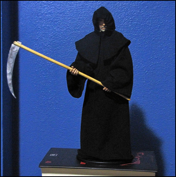 Here is the 1/6 scale hand made folkloric traditional Grim Reaper robe. Scythe is NOT included. If you also want scythe, please send a mail.